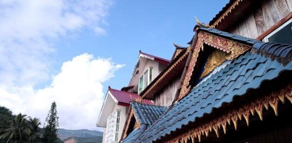 (曼勉社區(qū)保留傣族特色的彩石瓦屋頂)
