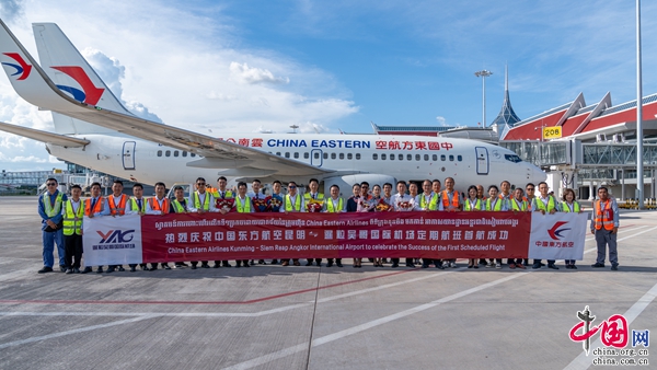 當(dāng)?shù)貢r(shí)間11月12日14時(shí)45分,從昆明起飛的東航MU753次航班平穩(wěn)降落在暹粒吳哥國(guó)際機(jī)場(chǎng),這是首個(gè)從中國(guó)出發(fā)至柬埔寨暹粒吳哥國(guó)際機(jī)場(chǎng)的定期航班,也是云南民航踐行“一帶一路”倡議的又一重要舉措,將為兩地經(jīng)貿(mào)往來、人文交流搭建起更加寬廣的“空中絲路”。廣大旅客僅需2.5小時(shí),即可實(shí)現(xiàn)“春天之城”到“千年古跡”的自如切換。