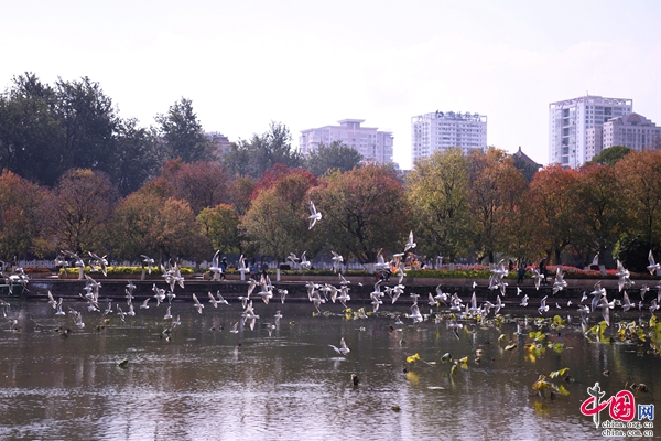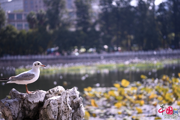 “一城山水半城湖”,秋日的翠湖公園別有一番風(fēng)韻。金黃的銀杏,褐色的殘荷,紅色的楓葉,像是一盤(pán)打翻了的調(diào)色盤(pán),各色各式的景色相映成趣,還有可愛(ài)的紅嘴鷗也來(lái)為翠湖的秋色增添生機(jī)。微微秋風(fēng),粼粼水波,習(xí)慣了城市的快節(jié)奏生活,不妨慢下腳步來(lái)翠湖邊飲一壺好茶,享受湖光山色,放松心情。