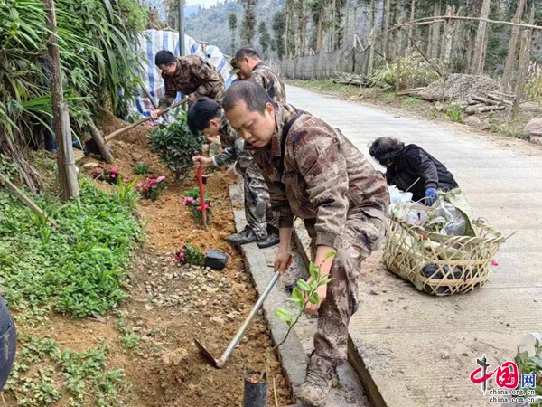 (與橋頭鄉(xiāng)老街子村村民一起打造微花園,推進(jìn)綠美鄉(xiāng)村建設(shè))