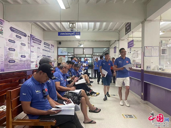 當日,拉力賽車隊從柬埔寨波貝口岸出境,從泰國亞蘭口岸入境。根據(jù)泰國的交通管理規(guī)定,拉力賽車隊前往泰國沙繳府交通管理局進行考試。通過近1個小時的視頻學(xué)習及紅綠燈測試等,44名拉力賽車手成功考取泰國臨時駕照,有效期30天。
