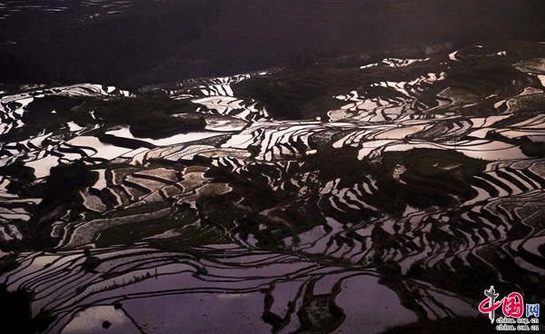 紅河哈尼梯田位于紅河州南部,遍布于元陽(yáng)、紅河、金平、綠春4縣,總面積約100萬(wàn)畝,1300多年來(lái),勤勞智慧的哈尼族人用一鋤一簍、一犁一耙把巍巍大山雕刻成精美的藝術(shù)品,以千變?nèi)f化的絕美姿態(tài)驚艷著世界。
