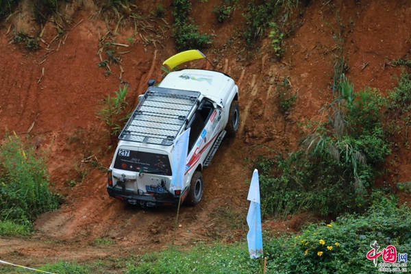 本屆拉力賽副總指揮、賽事主管束佳駿介紹,本次場地越野賽賽道為中等難度,涉及深坑、單邊橋、三連峰、炮彈峰、排骨路等路段,完成比賽時間越短成績越高。經(jīng)過激烈角逐,來自云南昆明的車手仲偉平以3分39秒的成績折桂,收獲全場的喝彩。