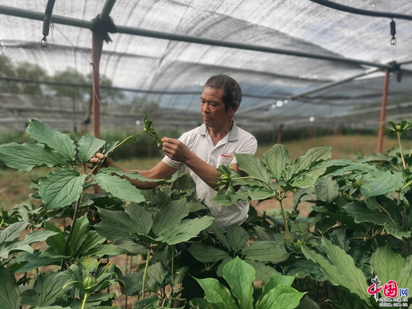 鏡頭轉(zhuǎn)向普掌新村小組,中草藥種植戶王師傅正在藥地里忙活,地里的重樓長得郁郁蔥蔥,葉片呈傘狀舒展開來,紅色的果實掩映在葉片中間。重樓是喜陰植物,忌強光直射,借助地旁的核桃樹搭設(shè)遮陽網(wǎng),可以為草藥生長創(chuàng)造適宜的環(huán)境,夏季核桃樹枝繁葉茂時,就有了天然的遮陽屏障。重樓藥用價值高,但生長周期長,從播種到收獲需要數(shù)年時間,這地里的每一棵重樓,都承載著王師傅多年的心血。據(jù)王師傅介紹,除重樓之外,他還種植著黃精、百部等中草藥,目前有十幾畝中草藥需要打理,剛開始只是零散種植,隨著種植經(jīng)驗的積累,近幾年不斷擴大了種植面積。目前,普掌村委會中草藥種植面積共計100余畝,越來越多的農(nóng)戶從零散種植轉(zhuǎn)向規(guī)?;N植。鎮(zhèn)村兩級也積極組織中醫(yī)藥種植培訓,為種植戶解決技術(shù)難題。