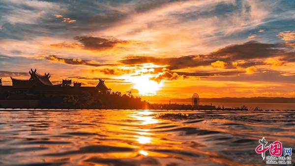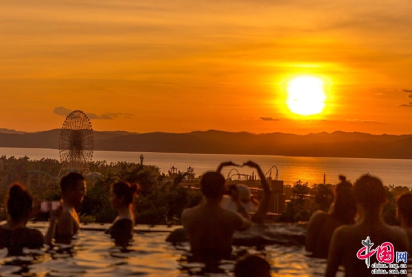 日落時分,身心浸潤于海拔1966米的山頂無邊際泡池,遙看五百里滇池南岸壯美風(fēng)光,賞一輪紅日慢慢將滇畔暈染成無邊油畫,于此,拾得萬丈霞光的橙。此刻如詩,攬滇沐霞。