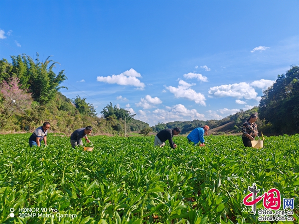 冬日暖陽,云南省普洱市思茅區(qū)云仙彝族鄉(xiāng)黃竹林村的農(nóng)田上一派忙碌的景象,走進(jìn)該村蘆山平掌小組,成片的滇紅花綠油油的成長,10多位村民正在地里忙活除草、施肥。蘆山平掌小組黨支部書記、小組長魯榮會笑著說:“去年我家種了六七畝紅花,收入18000多元,這比以前種植玉米和小麥翻了一倍,今年我們小組共有16戶農(nóng)民種植滇紅花,種植面積達(dá)104畝,戶均種植6.5畝,戶均增收2萬元。”