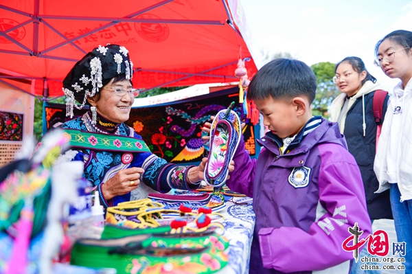 (祿勸彝族刺繡吸引了很多前來參觀的人。龍宇丹攝)