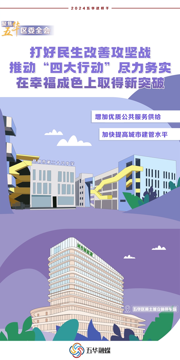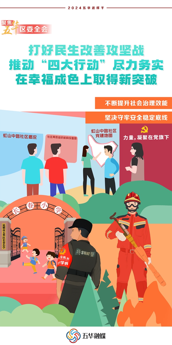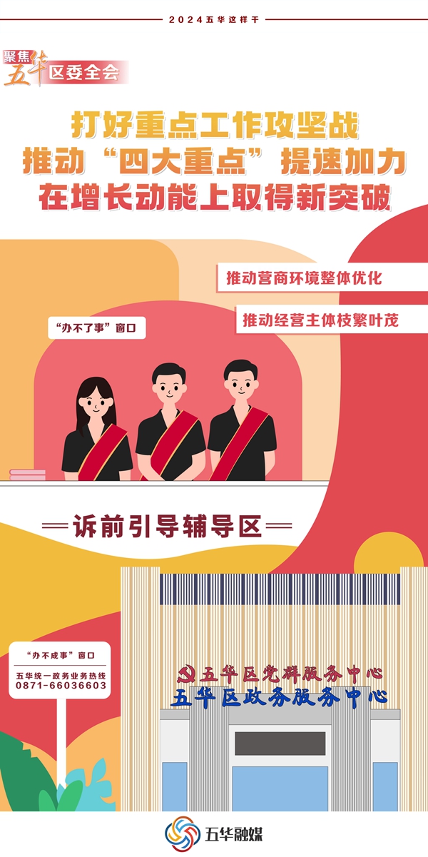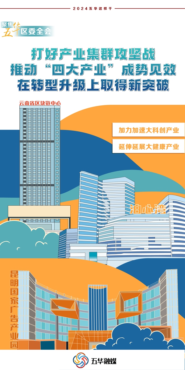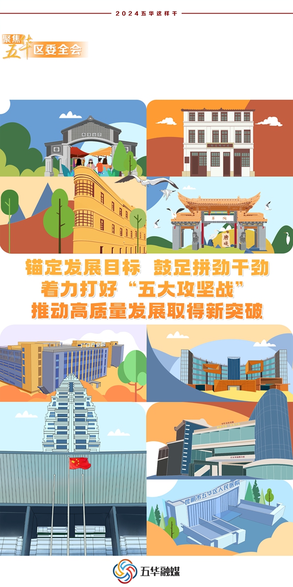 2024年來臨,昆明市五華區(qū)在總結(jié)2023年工作經(jīng)驗和取得的成效的基礎(chǔ)之上,精心部署安排、統(tǒng)籌謀劃2024年工作安排,堅持黨的領(lǐng)導(dǎo),加強(qiáng)黨的建設(shè),為高質(zhì)量發(fā)展提供堅強(qiáng)保證;錨定發(fā)展目標(biāo),鼓足拼勁干勁,著力打好“五大攻堅戰(zhàn)”,推動高質(zhì)量發(fā)展取得新突破;打好產(chǎn)業(yè)集群攻堅戰(zhàn),推動“四大產(chǎn)業(yè)”成勢見效,在轉(zhuǎn)型升級上取得新突破;打好環(huán)境整治攻堅戰(zhàn),推動“四大工程”縱深覆蓋,在城鄉(xiāng)品質(zhì)上取得新突破;打好民生改善攻堅戰(zhàn),推動“四大行動”盡力務(wù)實,在幸福成色上取得新突破;打好黨建引領(lǐng)攻堅戰(zhàn),推動“四大意識”深化強(qiáng)化,在擔(dān)當(dāng)作為上取得新突破。