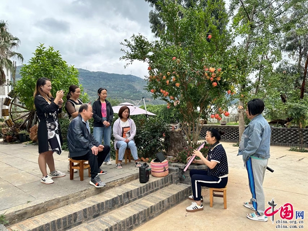 “我們馬房新開的民宿越來越多,大家的收入從不足5萬元到現(xiàn)在的10萬至20萬元。尤其是2023年,北京、廣東、四川、重慶等地游客到曲靖避暑,選擇在馬房居住1至3個月?!泵褡鍒F結進步示范戶、鄉(xiāng)逸民宿主人趙聰香樂呵呵地說:“每當夜幕降臨,游客與當?shù)厝罕娤嗵幦谇?,大家一起相聚石榴樹下,吹著水鄉(xiāng)荷塘晚風,聽著民族樂器合奏曲,聊著各地風土人情,稱得上‘中華民族一家親啊’!”