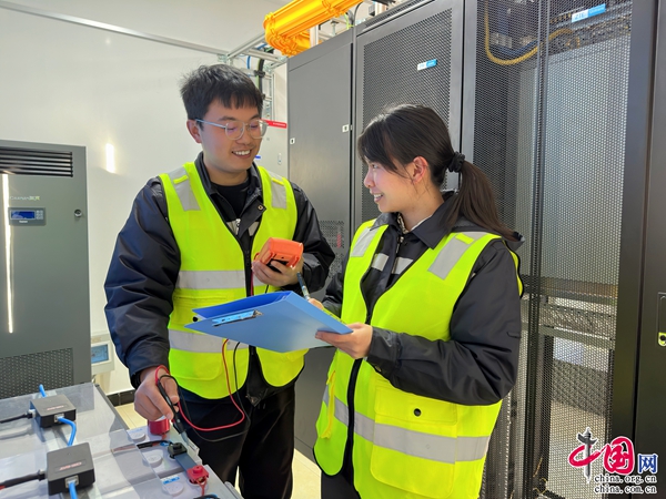 (周宇生和熊映芳一起巡視通信機(jī)房。王宇民/攝)