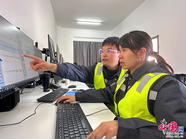 (周宇生和熊映芳一起分析故障信息,探討解決方案。王宇民/攝)