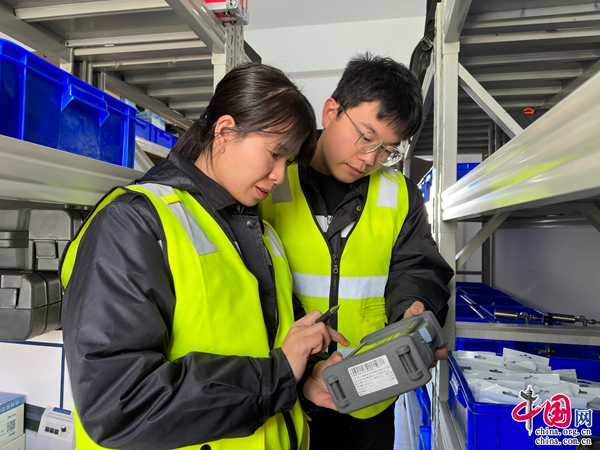 (值班期間,周宇生和熊映芳一起檢查備品備件。王宇民/攝)
