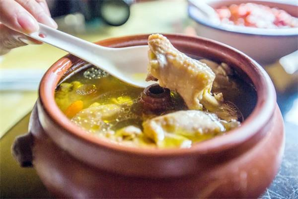 “選用當(dāng)天宰殺的土雞,經(jīng)過腌制后加入簡單的枸杞、三七、鹽放入汽鍋。小火慢蒸3小時,蒸汽一層一層往上鉆,一滴滴落入汽鍋中,肉粑骨離后鮮美湯汁也隨之成型?!逼侂u的烹飪方法多年來王策牢記于心,在他看來,汽鍋雞做法雖然簡單,但卻需要耐心守候、時間沉淀。而建水特產(chǎn)的紫陶汽鍋作為炊具,在土鍋上用熏蒸的方法精心烹制,最大限度的保持了食材的本鮮味,能制作出口感最好的汽鍋雞。禧雲(yún)滇汽鍋王一直堅持古法足時足料烹制,每天定量接單,確保每道菜真材實料、原汁原味。