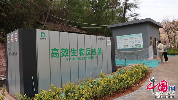 沿著污水管網(wǎng)走向,在水月村旁邊的濕地,一臺(tái)污水處理設(shè)備十分顯眼。