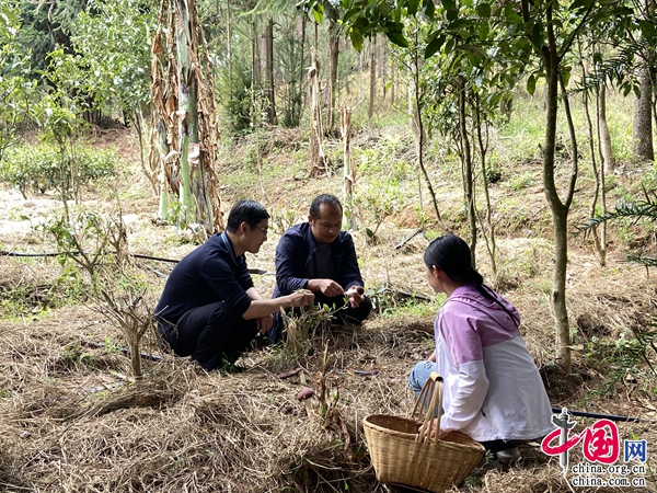 “你要把它的根部拿著,在靠近根部的地方,輕輕地旋轉(zhuǎn),然后再把它摘起來。在采摘的過程中盡量不要拉動太多的菌絲,這樣它還可以再長出新的赤松茸?!爆F(xiàn)場,昌寧縣嗨森中藥材種植專業(yè)合作社負(fù)責(zé)人李光俊正在向前來采摘體驗的游客介紹赤松茸采收細(xì)節(jié)。
