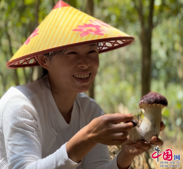 “我之前在親戚家吃到赤松茸煮雞,口感鮮甜味道很好,當(dāng)時就想看看它到底長在什么地方,今天到基地采摘,看到白白胖胖的赤松茸,整個采摘體驗讓我感到很滿足,這個菌子原來是長在這樣綠美的茶園里,怪不得味道這樣好?!鼻皝聿烧挠慰屠盥氛f。
