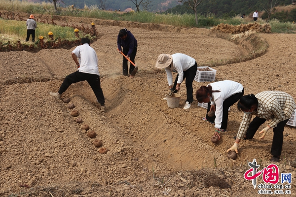 走進大過口鄉(xiāng)磨刀箐村委會,村民們在技術人員的指導下,緊張有序地進行犁地、開溝、起壟、播撒石灰、安種、覆蓋……近年來,大過口鄉(xiāng)積極發(fā)揮資源環(huán)境優(yōu)勢,大力發(fā)展魔芋種植,積極拓寬群眾增收渠道。魔芋種植工序簡單、便于管理、收入可觀,是幫助群眾實現增收致富的好產業(yè)。磨刀箐村委會農戶杞廷聰信心滿滿,今年計劃種植魔芋20畝,每畝收入可達7000元。2024年,全鄉(xiāng)種植魔芋14000畝,預計產鮮魔芋2.97萬噸,產值2.05億元。