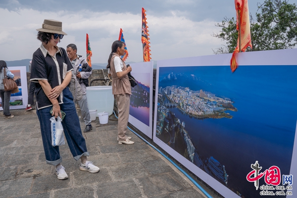 4月23日,“站在蒼山看洱海”三月街民族文化節(jié)影像活動——“又見洱?!睂n}片首映發(fā)布會暨楊士斌“洱海的樣子”大型個人攝影展在大理古城蒼山門開幕。