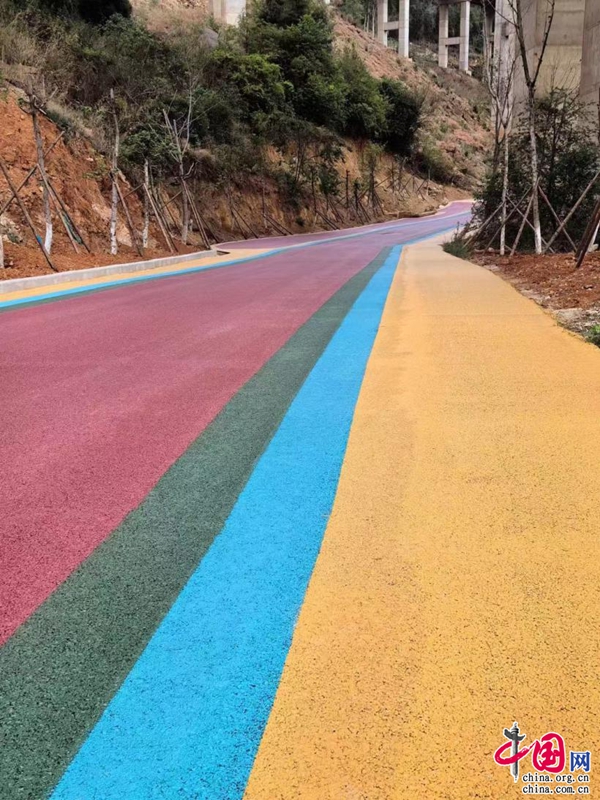 2024年4月26日,由昆明市西山區(qū)交通運(yùn)輸局籌資200多萬元,集致富路、生態(tài)路、旅游路、產(chǎn)業(yè)路、文化路“五路”融合于一體總長2.786公里的大墨雨村間道路(主線2.126公里,支線0.66公里),彩虹路1.68公里(主線1.02公里,支線0.66公里),修復(fù)12000平方米路面,種植藍(lán)花楹、棕櫚樹及五角楓共440棵,綠化面積4200平方米,鋪筑彩色瀝青路面1667米,安裝8個(gè)交安標(biāo)志,標(biāo)志著道路提升改造全面完成,也為當(dāng)?shù)匾妥宕迕駥?shí)現(xiàn)鄉(xiāng)村振興的夢想插上了騰飛的翅膀。
