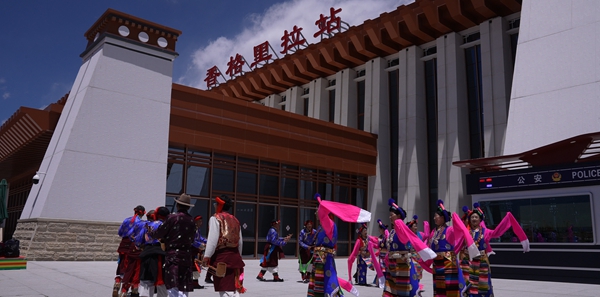 5月4日在香格里拉站出站口看到,還有不少游客乘坐動車前來游玩,出站口旁由香格里拉市文化和旅游局組織的本地民族歌舞表演隊正輕奏弦音踏歌起舞,歡迎游客的到來。在出站口,外地游客趙女士介紹,從網(wǎng)上看到香格里拉美景,所以利用這個假期和朋友一起來到香格里拉,感受香格里拉的人文風(fēng)情,游覽大美景色。(初程江初 李媛清 拉茸迪機(jī) 格桑拉初 香格里拉市融媒體中心供稿)
