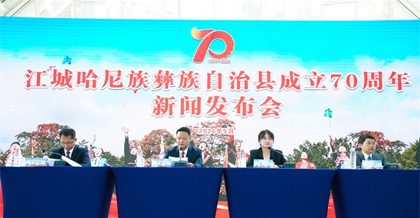 5月7日,云南省普洱市江城哈尼族彝族自治縣成立70周年新聞發(fā)布會(huì)在昆明市云報(bào)傳媒廣場(chǎng)召開。