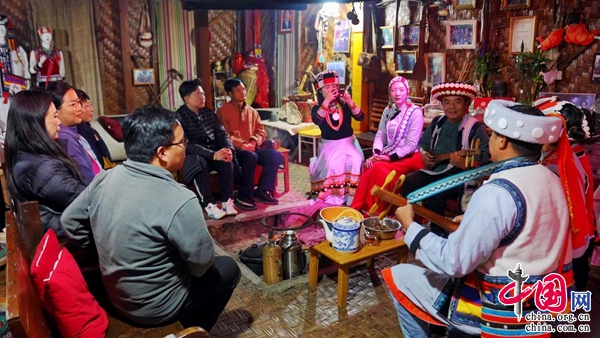 老姆登村現(xiàn)有國家級(jí)非遺項(xiàng)目怒族傳統(tǒng)舞蹈“達(dá)比亞”、省級(jí)州級(jí)非遺項(xiàng)目怒族民歌“哦嘚嘚”、州級(jí)非遺項(xiàng)目“達(dá)比亞”制作等25個(gè)非物質(zhì)文化遺產(chǎn)保護(hù)項(xiàng)目。在保護(hù)現(xiàn)有怒族文化的基礎(chǔ)上,老姆登村開啟了“非遺+旅游”的探索,深入開展怒族“如密期”“如眷年節(jié)”等節(jié)慶活動(dòng),以老姆登村150客棧為代表的一批民宿、客棧開展日常民族歌舞展演、小慧傳習(xí)館民族歌舞樂教授和表演,村民通過參加非遺表演,每月可增收3000元左右,探索出非遺文化“活化”的新路徑。