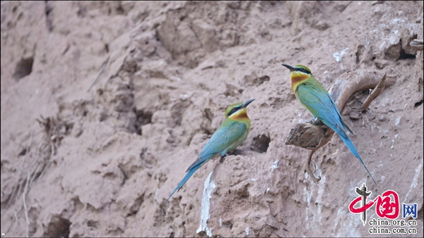 近段時(shí)間,云南玉溪元江河谷沿岸的沙壁上出現(xiàn)了許多大小不一的洞,洞里居住著國(guó)家二級(jí)保護(hù)動(dòng)物——栗喉蜂虎。