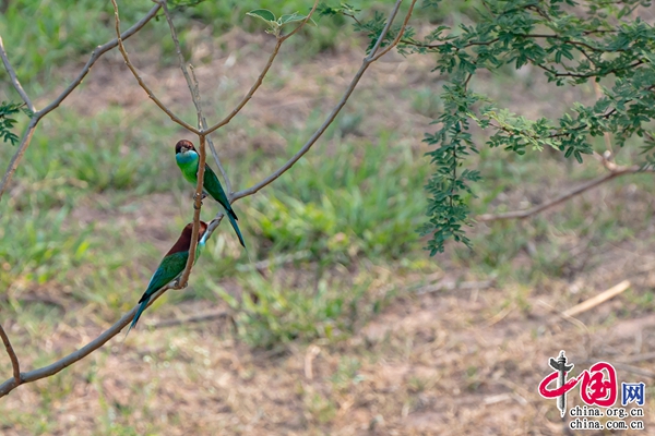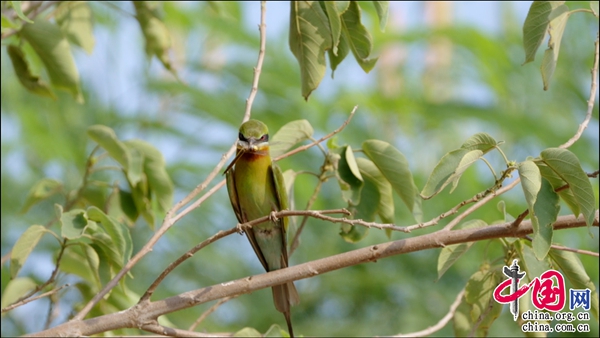 四月筑巢,五月求偶,六月是栗喉蜂虎父母最辛苦的一段時(shí)間,雌鳥“坐月子”,雄鳥“出門打獵”不僅要喂孩子,還要喂妻子,雖然所有的飛行類昆蟲都是栗喉蜂虎的食物,但它們更偏愛蜜蜂、蝴蝶和蜻蜓。到了七月,雛鳥就會(huì)陸續(xù)出巢,跟隨父母南下遷徙,不過(guò)也有例外。白永文介紹:“大約有5%的蜂虎會(huì)因?yàn)閮?yōu)良的生態(tài)環(huán)境而留下來(lái)。”