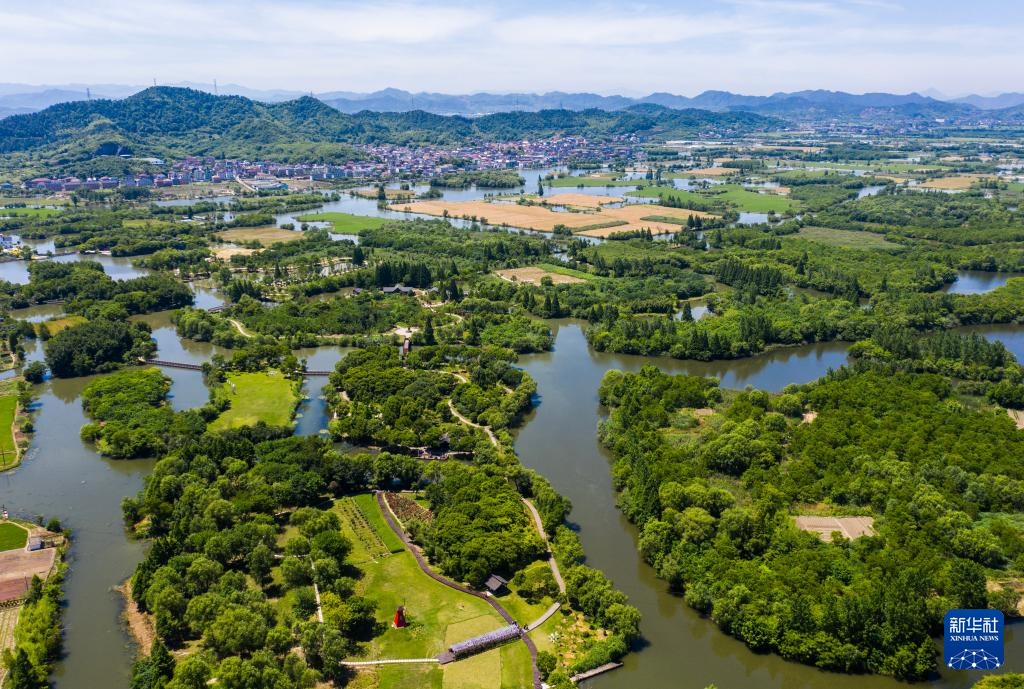 空中俯瞰白塔湖國家濕地公園(無人機照片,5月16日攝)。