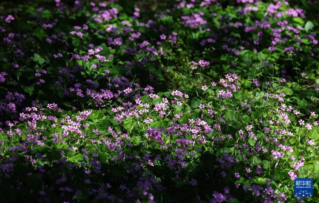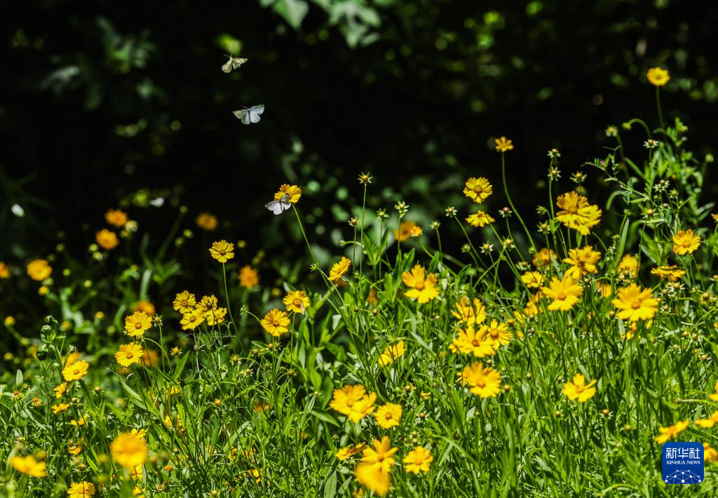 白塔湖國家濕地公園里盛開的夏日鮮花(5月16日攝)。