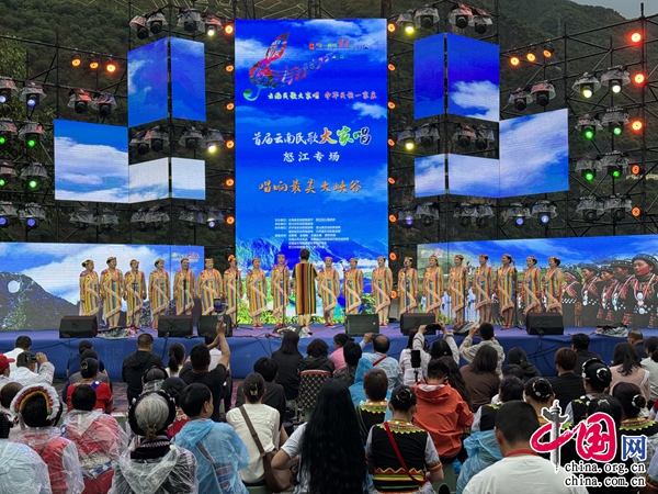 5月27日,在怒江大峽谷岸邊,云南民歌大家唱怒江專場——唱響最美大峽谷響亮開唱。來自傈僳族、怒族、普米族、獨龍族以及白族的歌手依次上臺演唱,為觀眾們獻上了一場豐富多彩的視聽盛宴。
