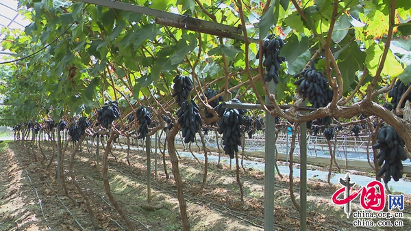 (葡萄基地葡萄長(zhǎng)勢(shì)喜人。沈興躍攝)