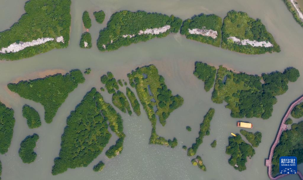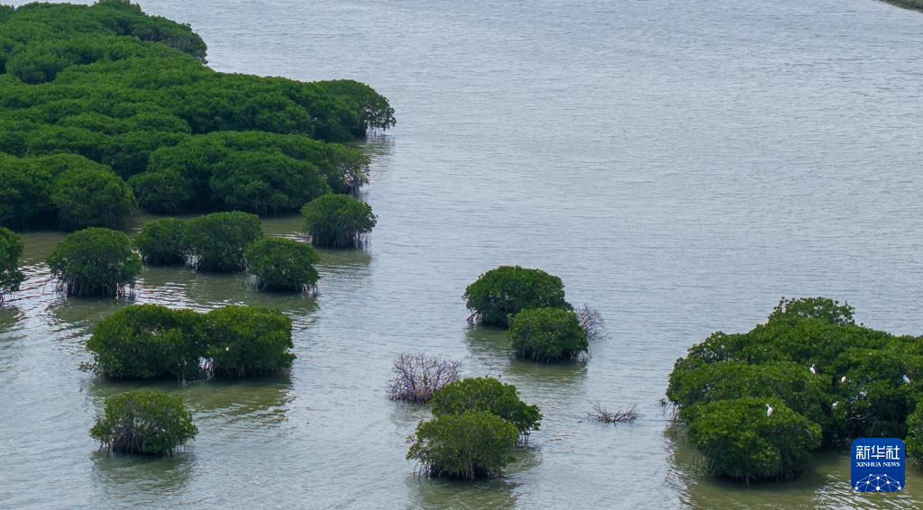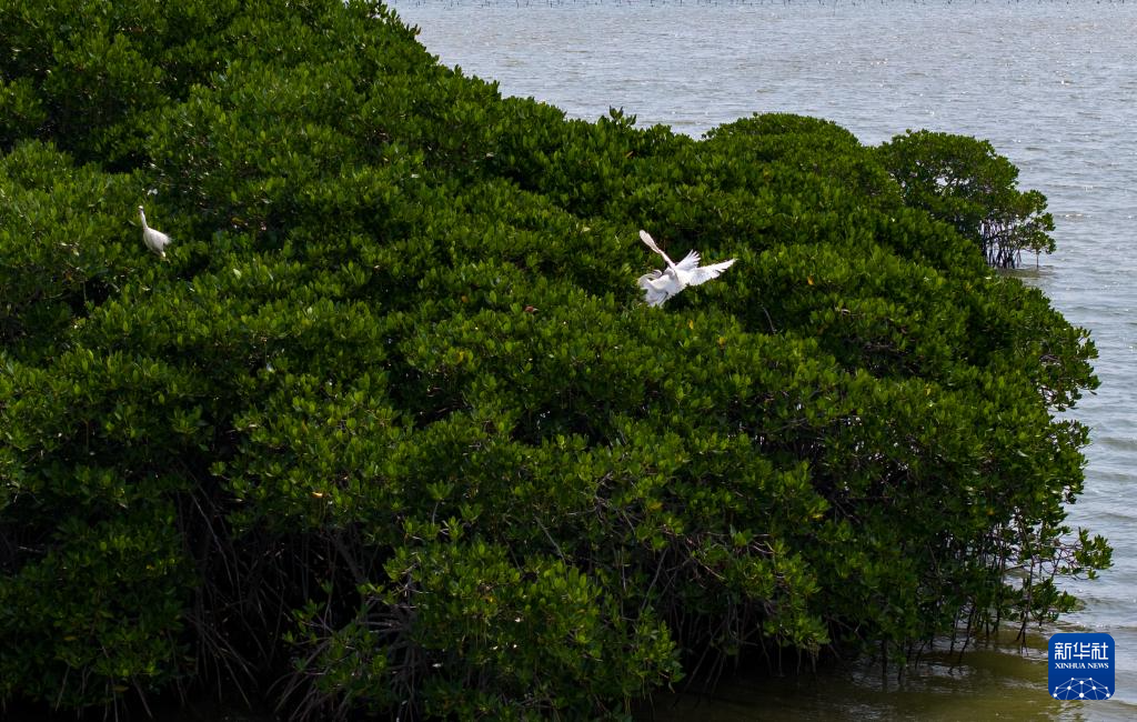 廣東湛江金牛島上,從空中俯瞰,一片片紅樹(shù)林宛如一個(gè)個(gè)綠色島嶼散落在淺海間,不時(shí)有鷺鳥(niǎo)掠過(guò)上空。廣東湛江紅樹(shù)林國(guó)家級(jí)自然保護(hù)區(qū),是中國(guó)面積最大、分布最集中的紅樹(shù)林自然保護(hù)區(qū),是世界濕地生態(tài)恢復(fù)的成功范例。
