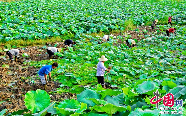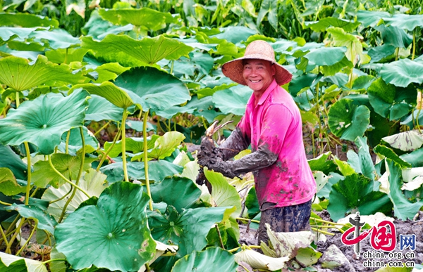 眼下,陶保坤的3畝早熟蓮藕也快挖完。他聘請的挖藕工李家福一天掏蓮藕300多公斤,能獲得近500元的酬勞。在竹園鎮(zhèn)萬畝蓮藕豐收的季節(jié),像李家福一樣每天忙于為蓮藕種植戶掏藕的工人有100多人。萬畝清荷產(chǎn)出的蓮藕既讓種植戶數(shù)了“紅花花”的鈔票,又帶動(dòng)了當(dāng)?shù)卮迕窬徒蜆I(yè)。