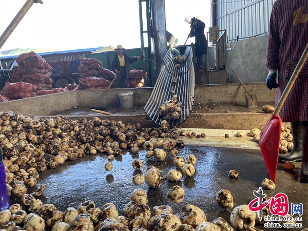 磨刀箐村的魔芋種植只是大過口鄉(xiāng)魔芋產(chǎn)業(yè)發(fā)展的一個縮影。近年來,大過口鄉(xiāng)聚焦“產(chǎn)、供、銷”一體化產(chǎn)業(yè)鏈,成立魔芋專業(yè)協(xié)會1個、魔芋專業(yè)合作社6個,培育魔芋加工企業(yè)7戶,魔芋精粉年加工能力達(dá)3000噸;先后引進楚雄天泰農(nóng)業(yè)、湖北一致魔芋等龍頭企業(yè)開展魔芋精深加工,與湖北強生魔芋、河南衛(wèi)龍食品等企業(yè)實行訂單生產(chǎn)銷售。2023年,全鄉(xiāng)魔芋產(chǎn)值2億元,1556戶種植農(nóng)戶年收入超過10萬元,其中32戶年收入達(dá)50萬元。
