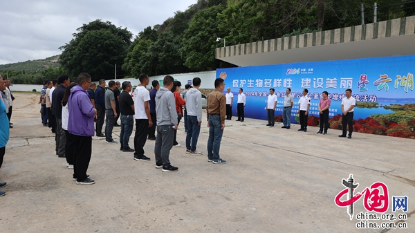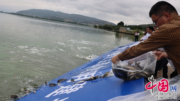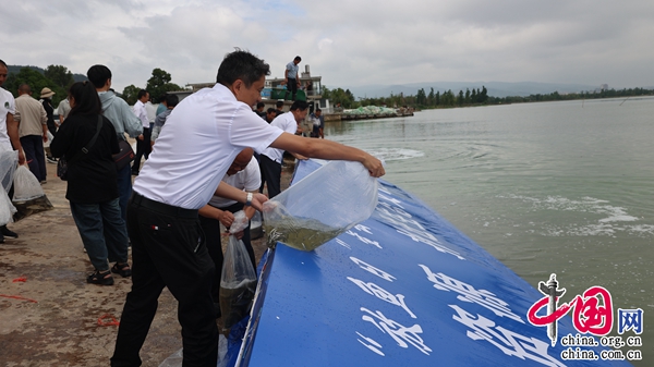 6月6日是全國第十個“放魚日”,云南省玉溪市江川區(qū)在星云湖畔寧海街道石巖哨村委會大凹渡河訓(xùn)練場舉辦主題為“保護生物多樣性 建設(shè)美麗星云湖”星云湖土著魚類增殖放流活動,將28萬多尾珍稀瀕危土著魚種投放到星云湖中。