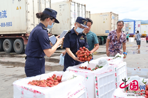 據(jù)了解,今年4月25日,首批越南荔枝入境后,荔枝進(jìn)口便呈現(xiàn)出“火爆”的狀態(tài)。河口口岸作為中越邊境云南段最大的陸路口岸,也是中越兩國重要的貿(mào)易通道之一。在熱帶水果集中上市的季節(jié),河口海關(guān)等職能部門主動作為,根據(jù)時鮮水果通關(guān)時效要求高、檢驗檢疫監(jiān)管標(biāo)準(zhǔn)嚴(yán)的特點,開設(shè)了“綠色通道”,確?!磅r味”不“打烊”。河口海關(guān)口岸監(jiān)管一科副科長耿睿介紹:“我們針對進(jìn)口荔枝季節(jié)性強(qiáng)、貨運量大、通關(guān)時效要求較高等特點,協(xié)調(diào)貨場管理方劃分越南荔枝專用查驗區(qū)域,疊加運用‘中越農(nóng)副產(chǎn)品綠色通道’、實驗室快速檢測等通關(guān)便利化措施,實現(xiàn)進(jìn)口荔枝‘即到即查,無異常即放行’,有效提高現(xiàn)場監(jiān)管效能,確保進(jìn)口荔枝安全、高效通關(guān)?!?/p>