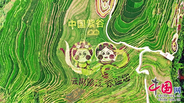 站在觀景臺上遠眺,藍天下稻田郁郁蔥蔥,巨型彩色稻田畫盡收眼底。紫色、紅色、粉色、黃色、白色5種彩色水稻禾苗,共同“繪畫”出墨江城市吉祥物“瑞米”“瑞拉”圖案、“中國紫谷”“云南墨江歡迎您”字樣,彰顯墨江“中國紫米之鄉(xiāng)”“雙胞之家、雙生之城”的魅力。