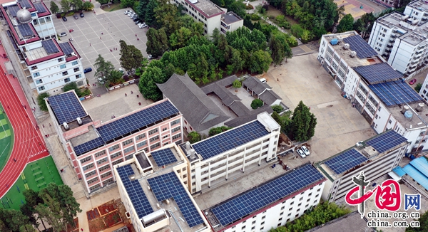 值得一提的是,師宗縣第一中學(xué)在云南省率先開展近零碳排放校園示范建設(shè)項目——屋頂分布式光伏項目,項目設(shè)計總裝機(jī)容量約為441.1kwp。該項目技術(shù)負(fù)責(zé)人徐國華介紹說,項目于2023年10月份完工,現(xiàn)進(jìn)入并網(wǎng)階段,并網(wǎng)完成后,預(yù)計每年發(fā)電44萬度,可節(jié)約電費近20萬元,間接碳減排16.4噸。
