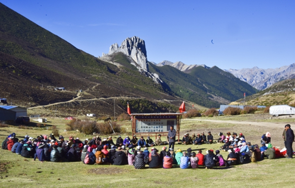 (工作隊在蟲草采挖地通過集中宣講、召開座談、走訪群眾等方式開展法治、生態(tài)保護、森林防火等宣傳教育)