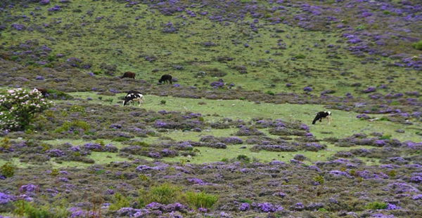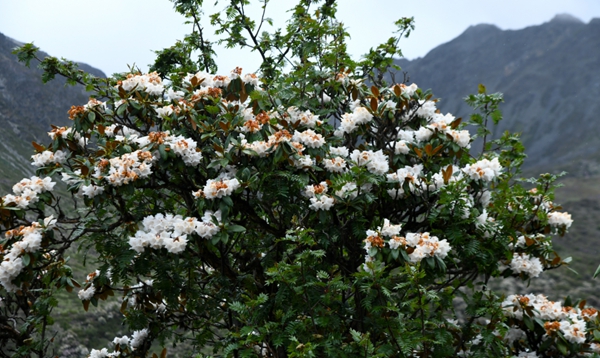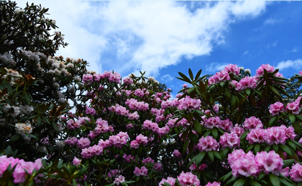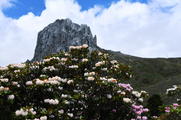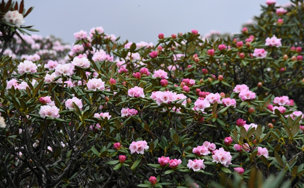 6月,來到位于云南省迪慶州香格里拉市東旺鄉(xiāng)勝利村的雪山之巔,就會看到漫山的高山杜鵑花開成海,那些白的、紅的、粉的高山杜鵑在山野里次第開放,為廣袤的山梁披上一件件彩色外衣,蔚為壯觀。