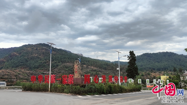 (紅塔區(qū)小石橋彝族鄉(xiāng)入口處“民族團(tuán)結(jié)”小景觀)