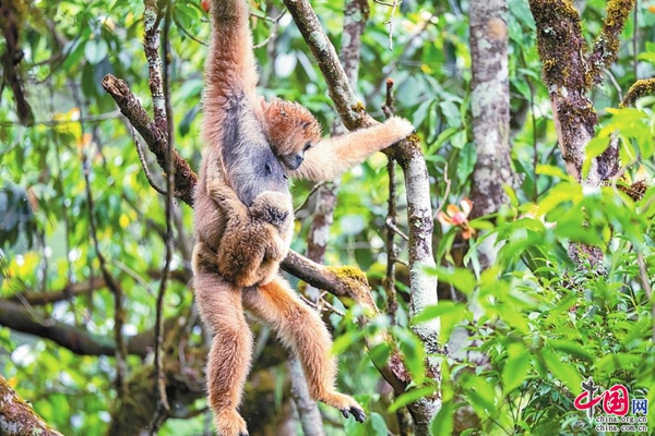 在云南省哀牢山國家級自然保護區(qū)雙柏縣境內(nèi),生活著43群187只西黑冠長臂猿。西黑冠長臂猿是中國一級保護動物,被世界自然保護聯(lián)盟評估為極度瀕危物種,是密林高歌的“樹冠精靈”,是這片森林的守護者,更是健康生態(tài)系統(tǒng)的象征。