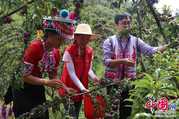 盛夏時節(jié),云南省楚雄州牟定縣江坡鎮(zhèn)7500畝“江紅李”李子陸續(xù)進(jìn)入成熟上市季。走進(jìn)樂力沖村李子園內(nèi),成片的李子樹郁郁蔥蔥,一顆顆身披白霜的紫紅色李子綴滿枝頭,一群群游客聞“鮮”而來,體驗(yàn)采摘的樂趣。農(nóng)戶們正忙著采摘、選果、發(fā)往市場銷售……豐收的喜悅躍上眉梢。