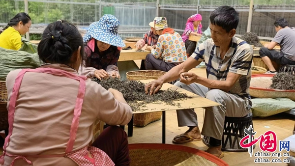 殺青、揉捻、干燥……在布龍茶市(一期)茶葉初制加工廠,產(chǎn)業(yè)加工機器的嗒嗒聲不絕于耳,工人們正忙著制作茶葉,現(xiàn)場一片熱火朝天的繁忙景象。