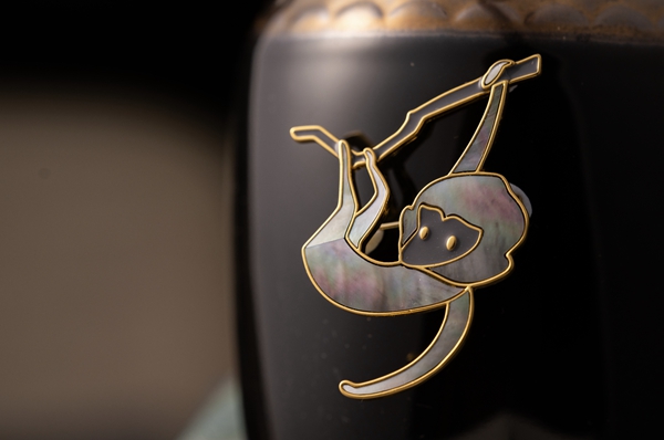 “森林里的酷跑”胸針的原型為西黑冠長(zhǎng)臂猿,設(shè)計(jì)靈感來(lái)自云南省文化館系列紀(jì)錄片《出發(fā)趣云南》中關(guān)于西黑冠長(zhǎng)臂猿的有趣故事。趙益選用了海水貝母材料,以其五彩斑斕的效果完美展現(xiàn)長(zhǎng)臂猿毛色的多樣性和獨(dú)特性。同時(shí),這種選擇也凸顯了設(shè)計(jì)的精致與稀有。