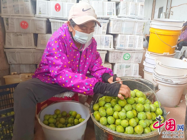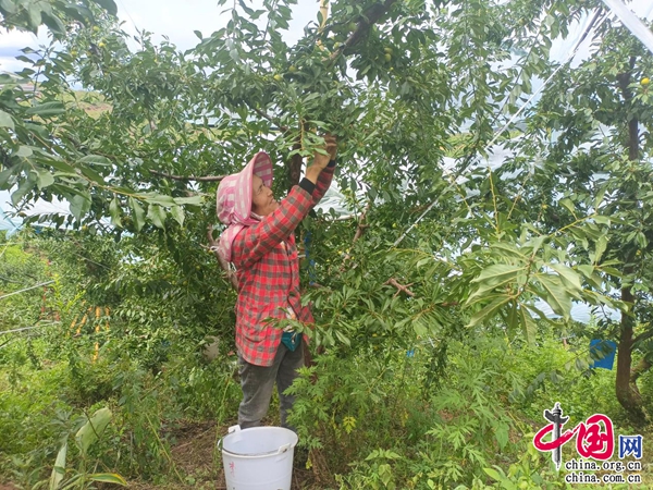 “農(nóng)閑時(shí)候我們都來(lái)果園打工,這幾天就是摘李子,一天80元的工錢,一個(gè)月下來(lái)工資有2000元左右?!贝迕駰罟鹛m高興地說(shuō)。