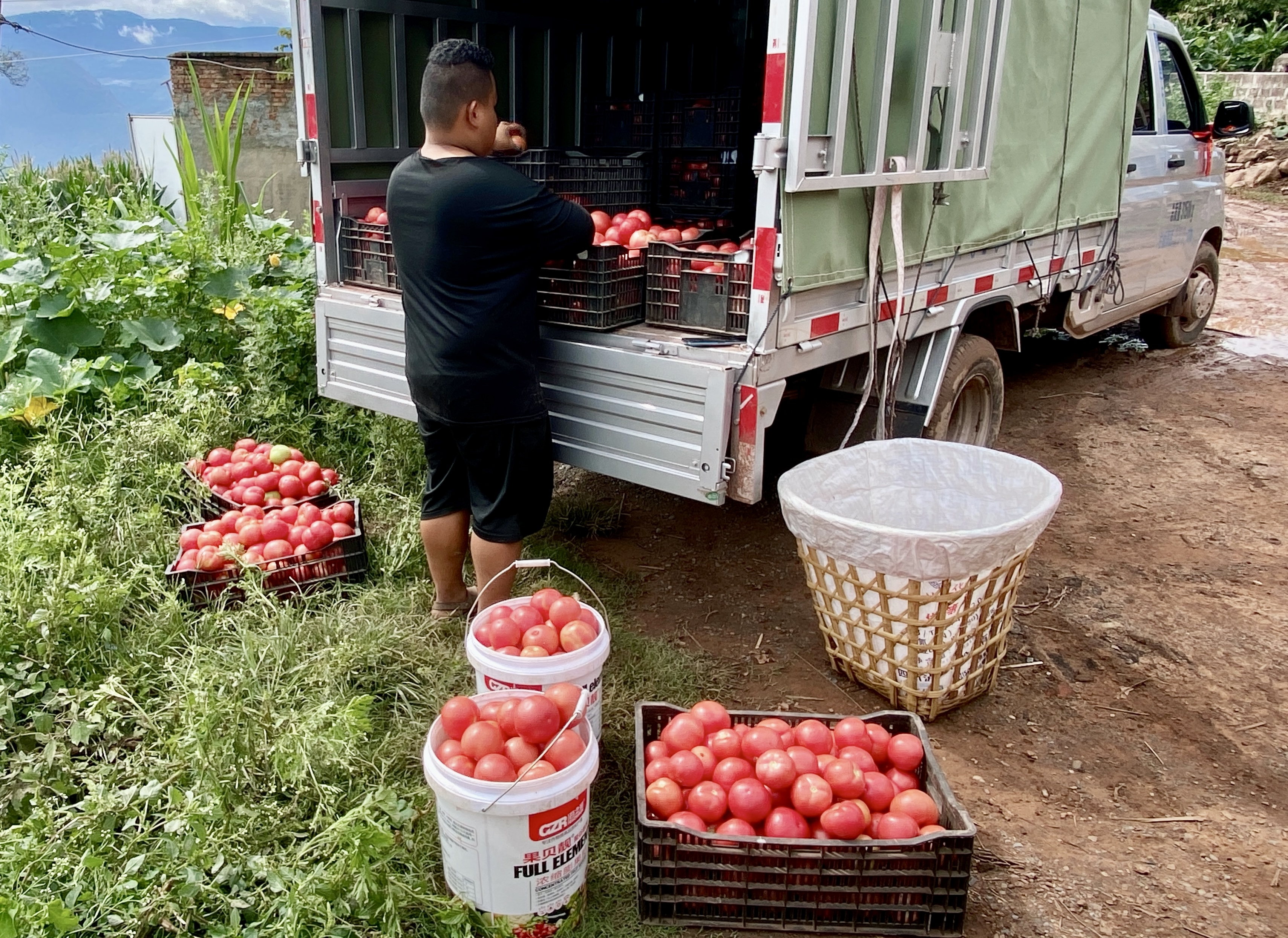 云南省楚雄彝族自治州雙柏縣大麥地鎮(zhèn)峨足村,秋天的第一波西紅柿高價(jià)上市,奏響了豐收的序曲。