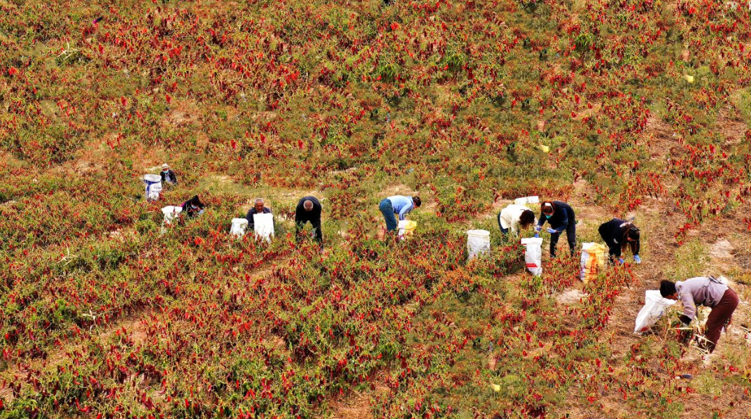 眼下正值色素辣椒的采收時(shí)節(jié),10月15日,柯坪縣蓋孜力克鎮(zhèn)的辣椒種植基地里紅彤彤的辣椒綴滿枝頭,長(zhǎng)勢(shì)旺盛,農(nóng)民們正穿梭于“辣椒?!敝杏袟l不紊地進(jìn)行采摘,忙碌的場(chǎng)景勾勒出了一幅美麗的秋日田園豐收畫卷。