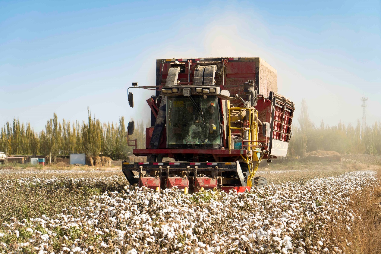 10月16日,在于田縣希吾勒鄉(xiāng),棉桃滿枝競相綻放,吐出朵朵白絮,一眼望不到邊,朵朵棉花蘊含著豐收的希望,勾勒出一幅農(nóng)業(yè)產(chǎn)業(yè)帶動鄉(xiāng)村全面振興的“幸福”畫卷。大型采棉機來回穿梭,快速地將棉花從棉稈上脫離,并通過氣流將棉花推送到儲存車廂,自動化采收機械高效有序進行棉花采摘。據(jù)了解,一臺大型棉花采收機每天可以完成300多畝地的采收工作,且采凈率高達95%以上。